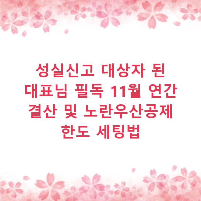 11월이 되면 사무실 책상 앞에 앉아 마음이 무거워지는 대표님들이 있습니다. 작년 이맘때 갑작스럽게 날아든 종합소득세 고지서를 떠올리기 시작하거든요. 특히 올해 처음으로 ‘성실신고 대상자’ 통보를 받은 분들은 그 압박감이 몇 배는 될 겁니다. 12월이…