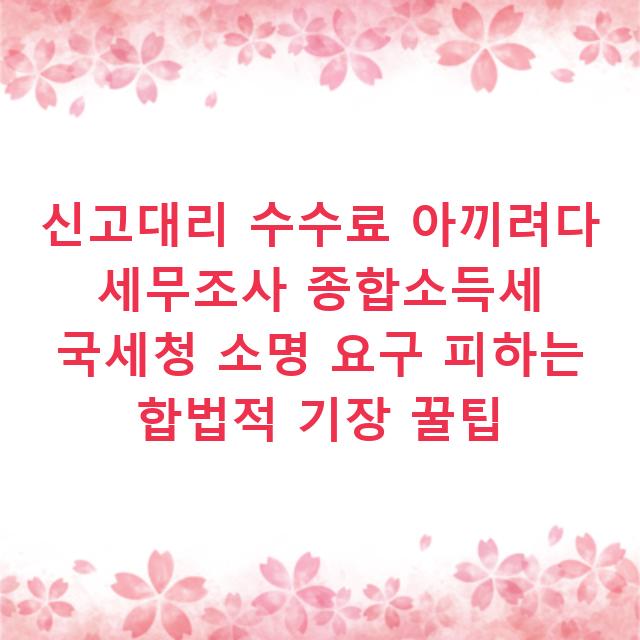 신고대리 수수료 아끼려다 세무조사 종합소득세 국세청 소명 요구 피하는 합법적 기장 꿀팁