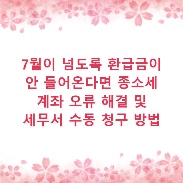 7월이 지나도 종합소득세 환급금이 입금되지 않는다면, 단순한 시스템 지연이 아닐 가능성이 큽니다. 가장 흔한 원인은 계좌 정보 오류와 체납 세금 상계입니다. 홈택스 ‘마이홈택스’에서 납부 내역을 먼저 확인하고, 문제가 있다면 관할 세무서에 직접 문의하…
